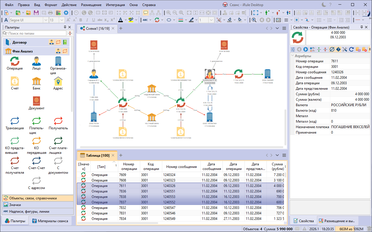 iRule Desktop позволяет создавать следующие виды аналитических материалов: схемы и таблицы. Приложение включает инструменты для анализа накопленных данных. Созданные аналитические материалы могут быть сохранены в файле сеанса. Материалы можно экспортировать в различные форматы и направить на печать. Работу с сохранённым файлом сеанса можно продолжить в любой момент или направить его коллеге.